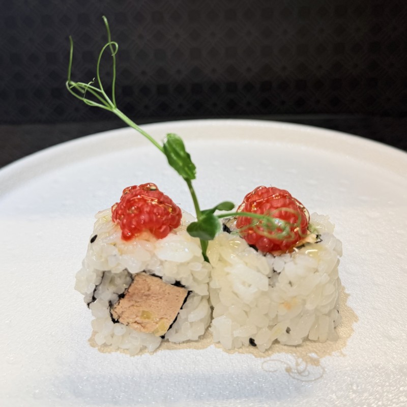 6 pièces Tempura, tomate séchée , oignons, crème cheese, tobiko et mayo spicy